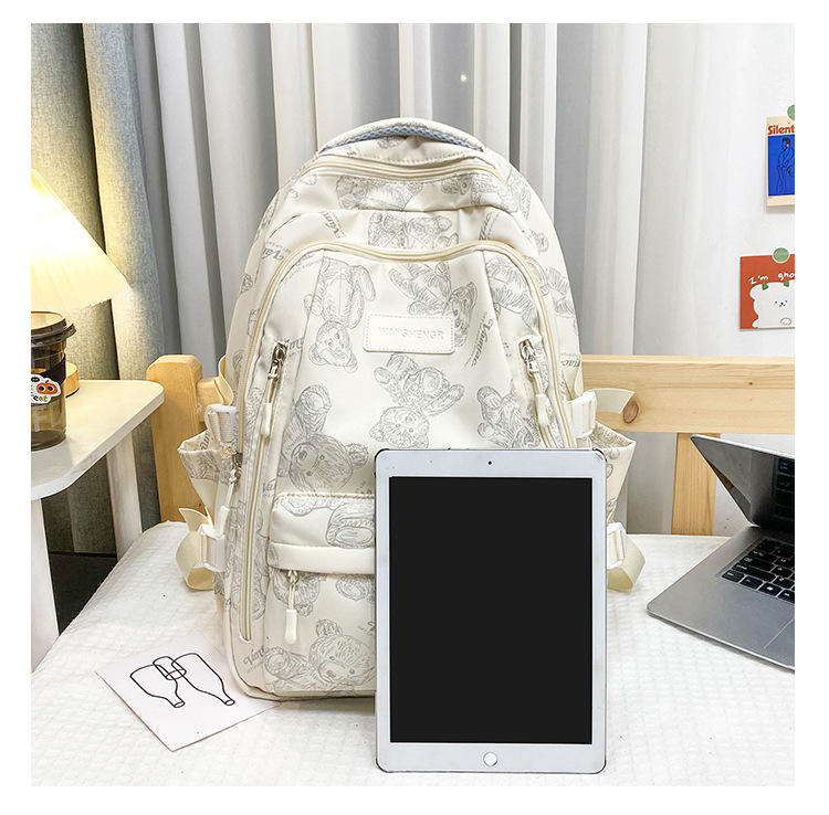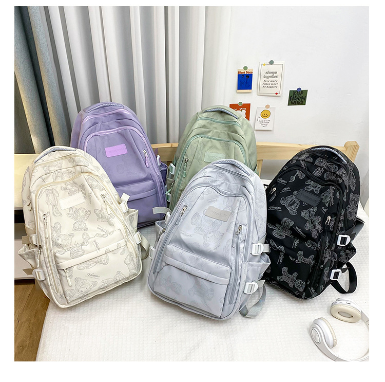 Cute Bears Print Backpack Fashion Versatile Large Capacity Travel Bags Women