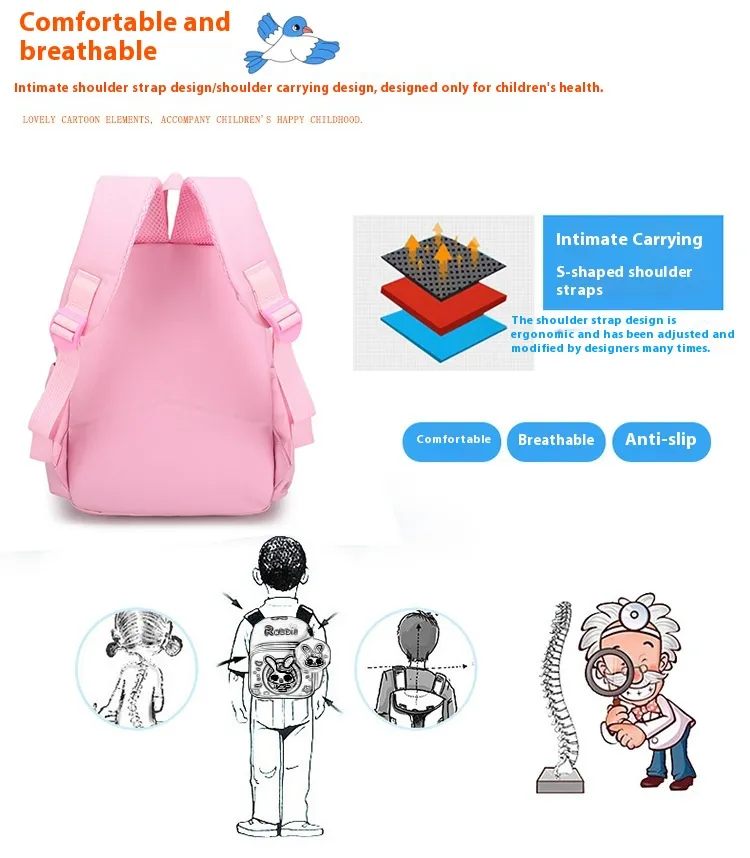 Cute Cartoon Children's Spine Protection With Coin Purse Children's Printed Schoolbag