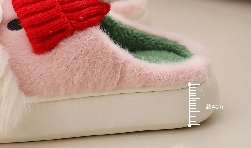 Cute Christmas Santa Claus Home Slippers Winter Warm Indoor Non-slip Floor Plush Shoes For Women