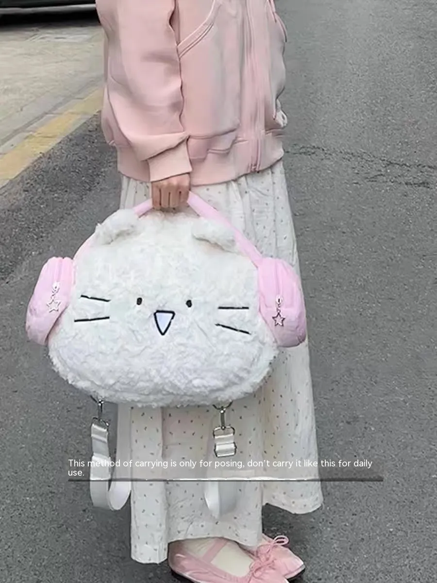 Cute Earphone Cat Backpack Plush Student Travel All-matching