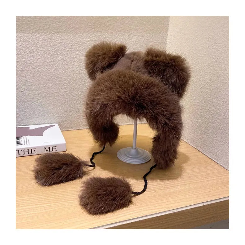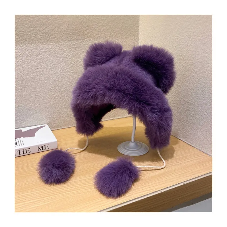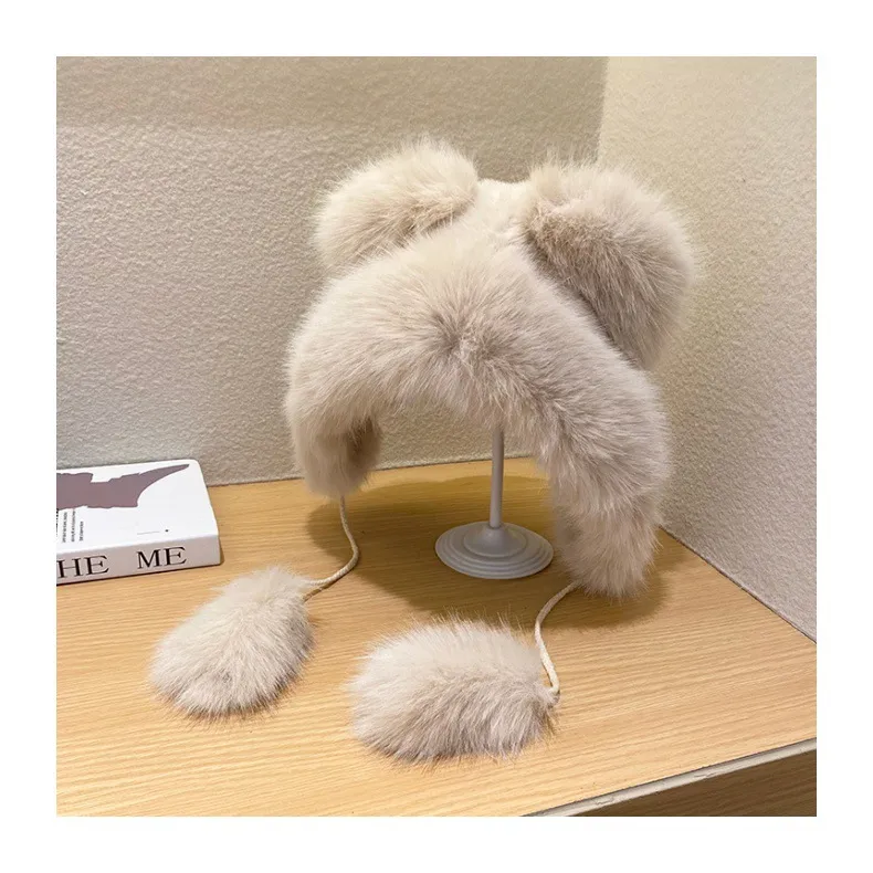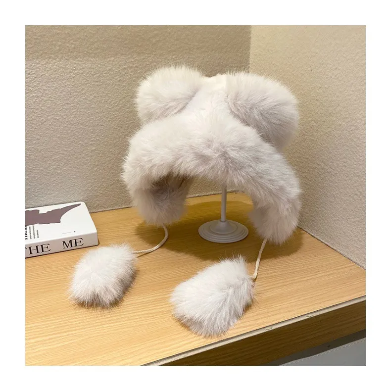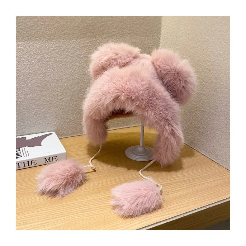 Cute Fluffy Warm Earflaps Cap Female Winter