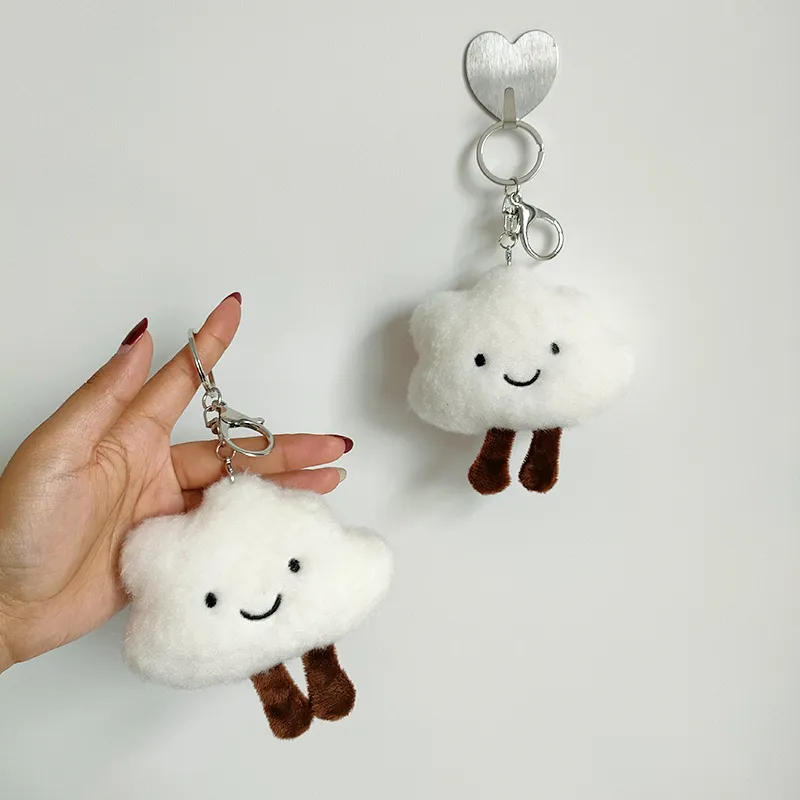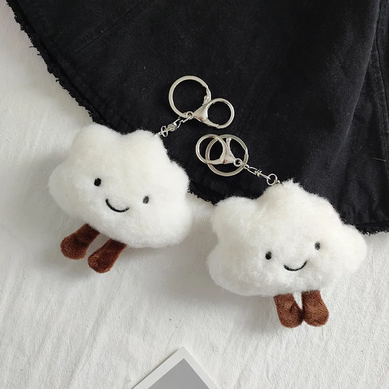 Cute Plush White Cloud Pendant Couple Keychain Ring