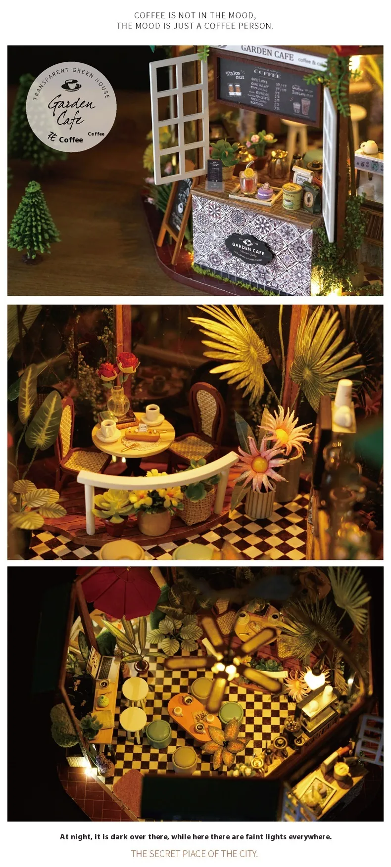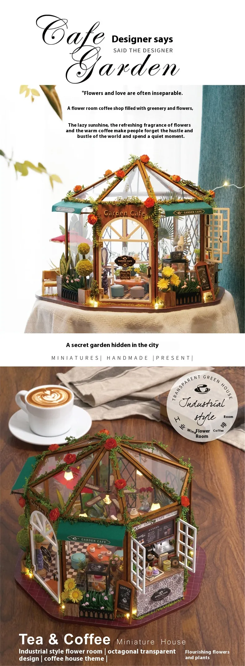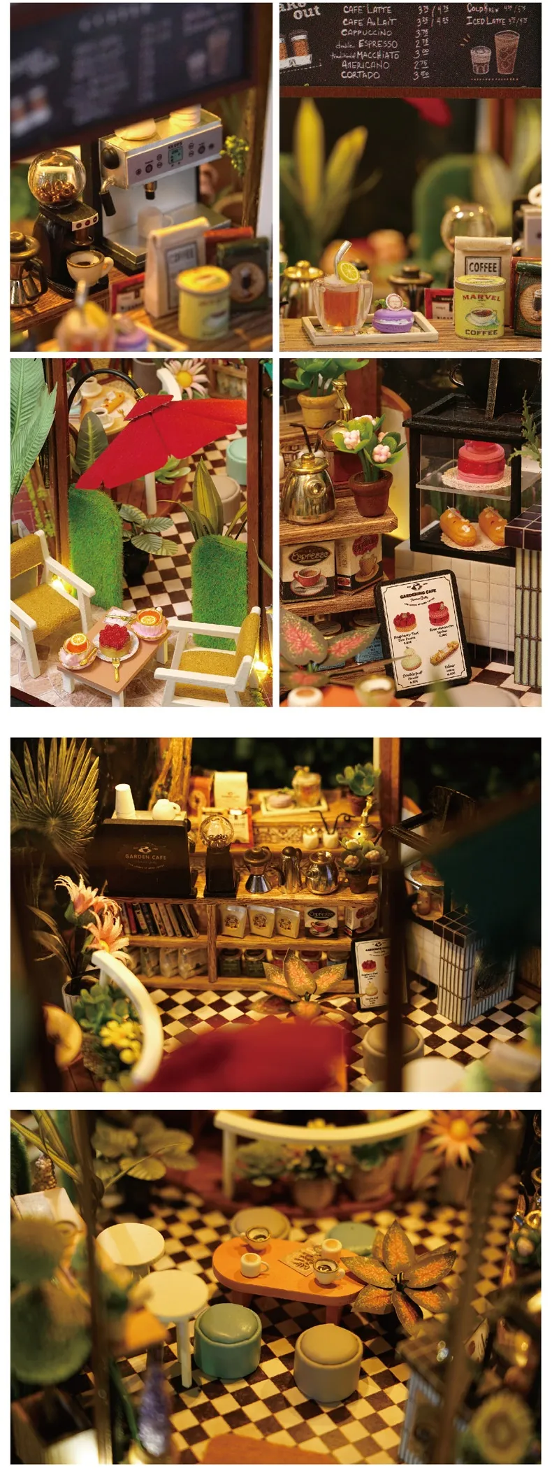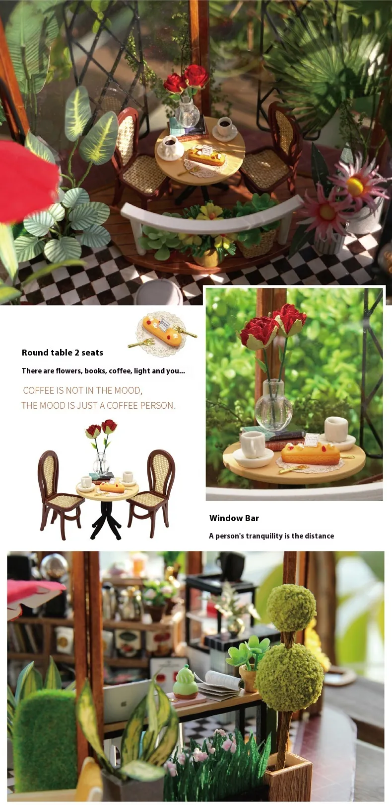 - Miniature Greenhouse and Coffee Shop Theme: Combines the charm of nature and the coziness of a café.