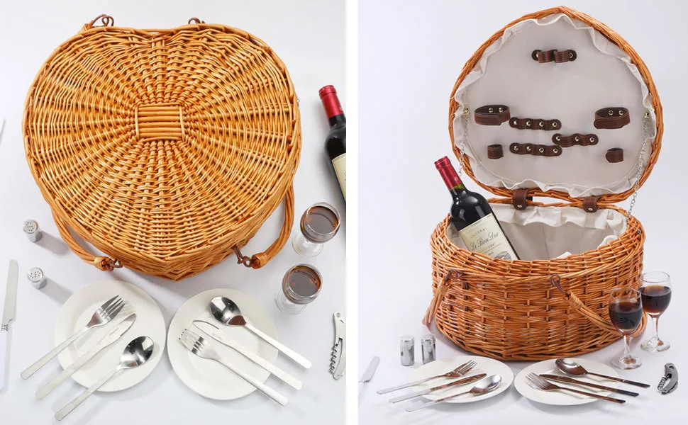 Stylish and Charming: The heart-shaped design gives this picnic basket a charming and romantic look, making it perfect for