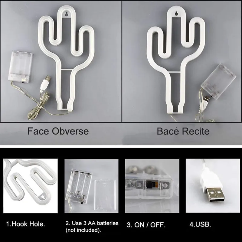 2.USB & Battery Powered Neon Light. Home Neon Light Sign Adopt USB or 3*AA Environmental Battery Power (Recommended to Use USB or