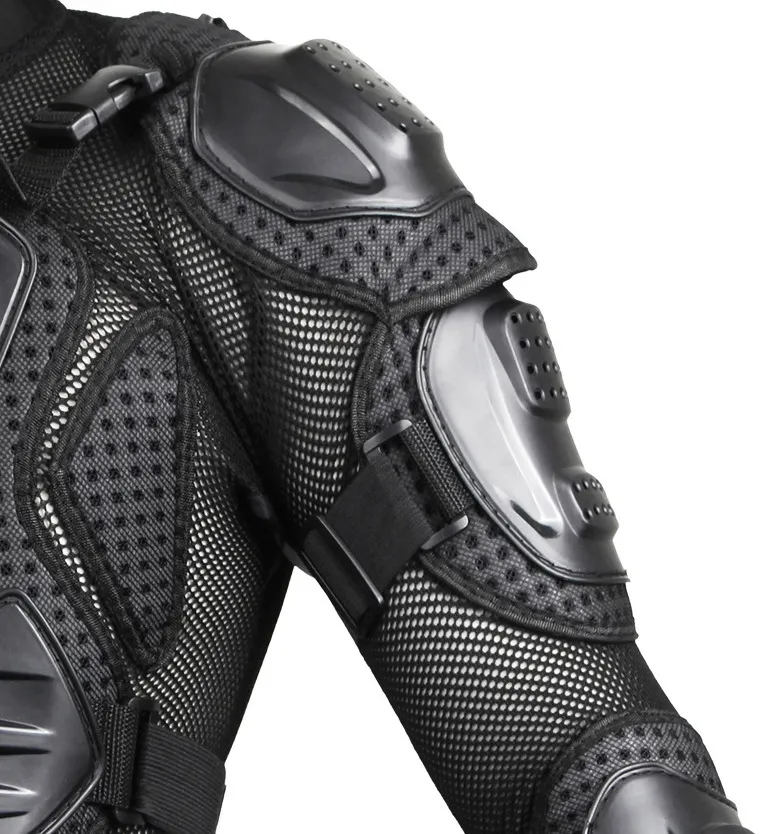 - Impact-resistant armor on critical areas such as the back, shoulders, and elbows