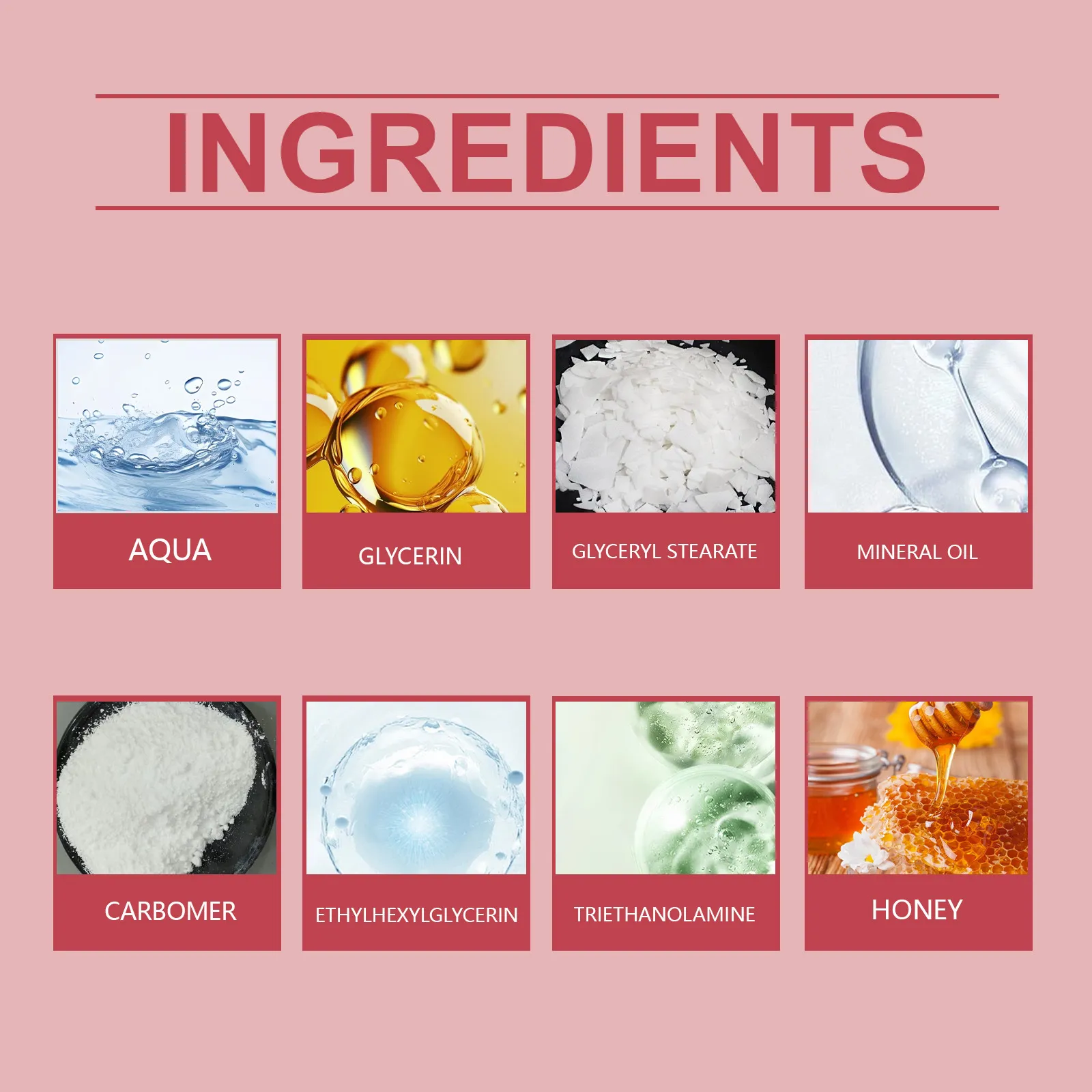 Ingredients: Water, glycerin, Glyceryl stearate, mineral oil, carbomer, ethylhexyl glycerol, triethanolamine, honey