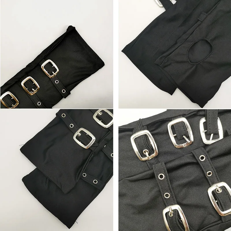 Embrace your edgy side with the Dark Metal Button Cuffs Gothic Half Open Finger Wristband Gloves. Featuring an innovative design with dark metal button cuffs and a unique half-open finger style, these gloves offer a perfect blend of punk, Y2K, and gothic aesthetics. Whether you're looking for a statement accessory for a Halloween costume, a protective arm warmer for outdoor activities, or a stylish addition to your streetwear collection, these gloves are a versatile piece for both function and fashion. With their sun protection sleeve design and unique strap detailing, they’re ideal for adding a bold touch to any outfit.