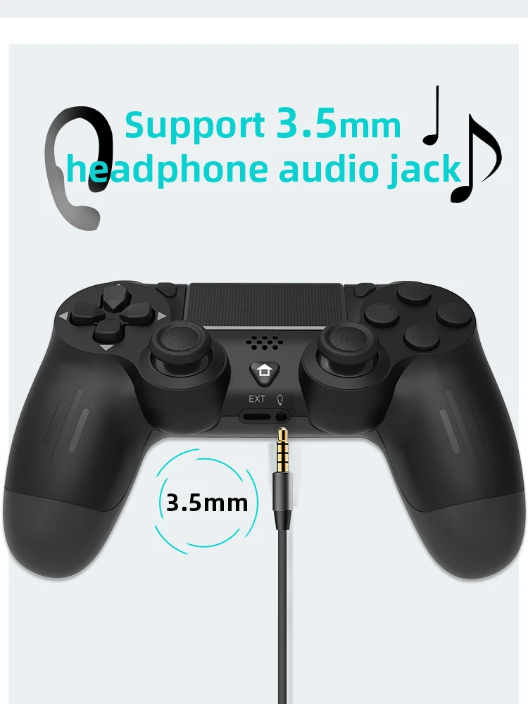 The controller with 3.5mm stereo audio jack that is perfectly compatible with gaming headsets. Powered via the included Micro-USB data cable, the controller can be plugged into the ps4 console for quick connection and charging.
