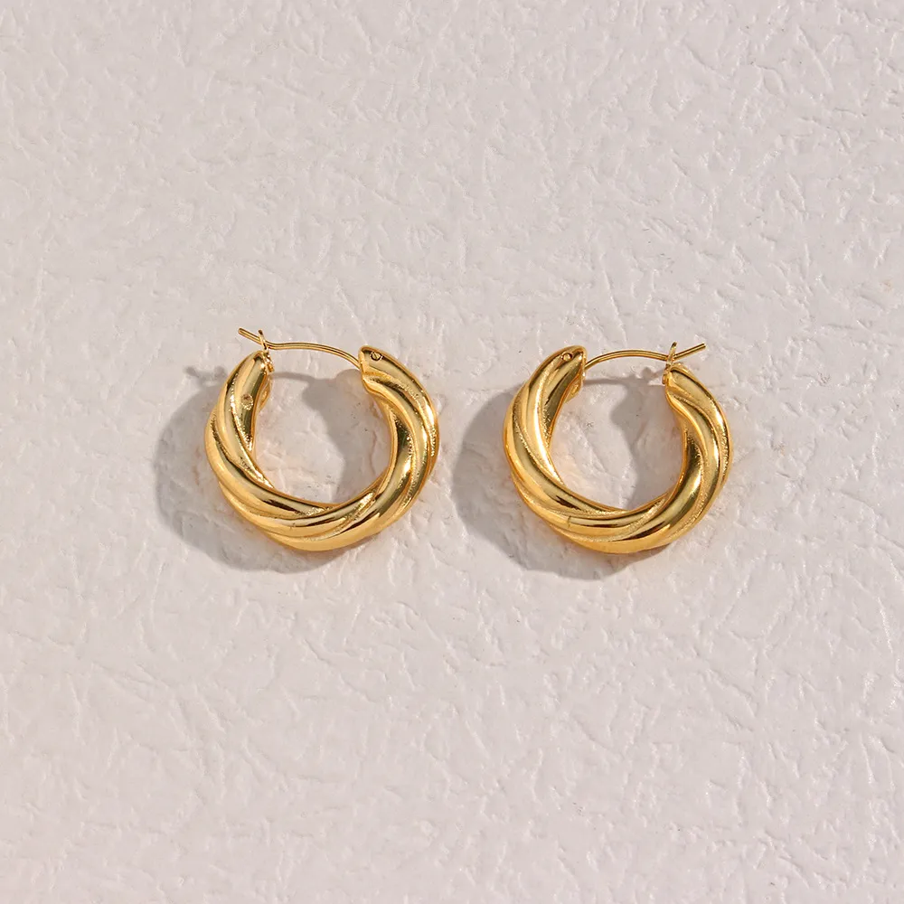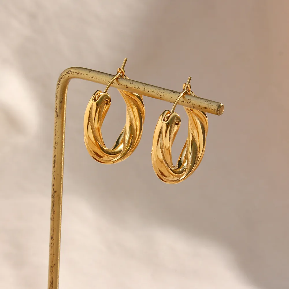 earrings feel dynamic and stylish. The twisted texture enhances the classic hoop shape, giving it a contemporary edge.