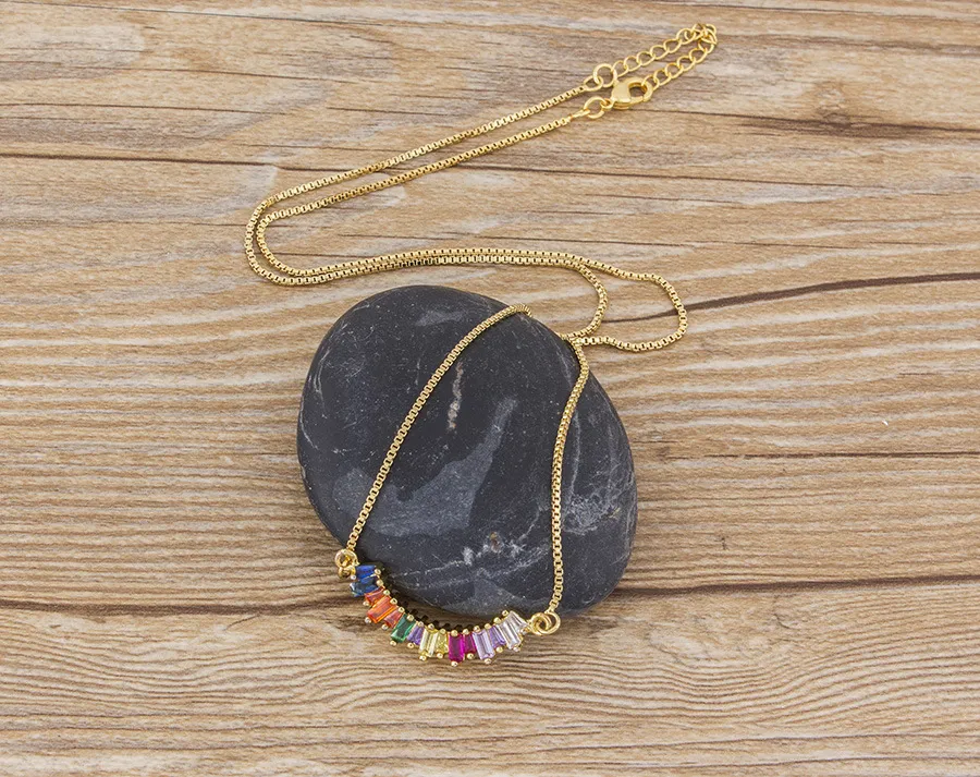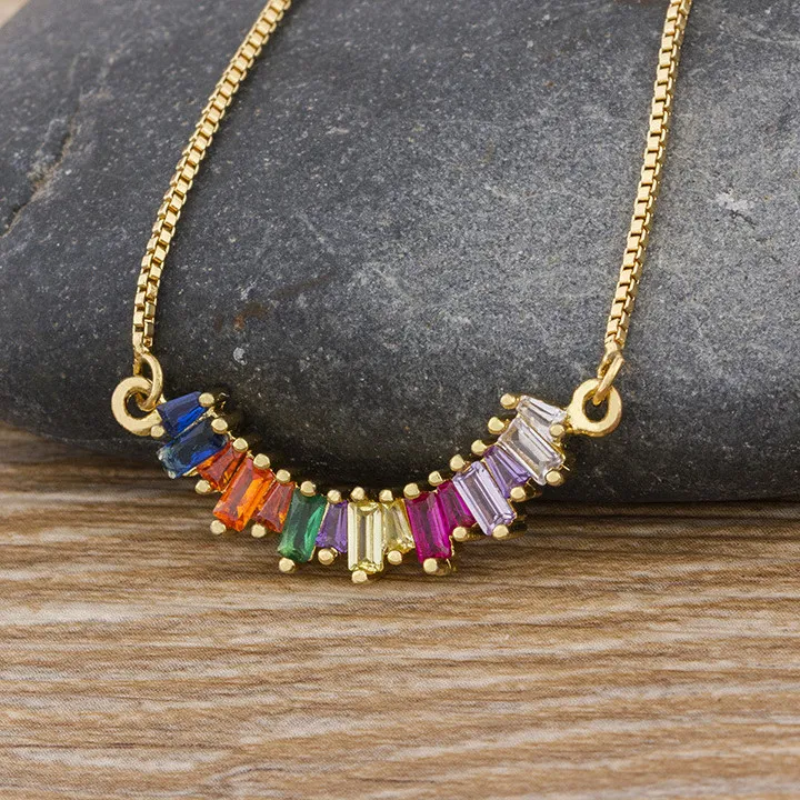 Design Geometric Rainbow Inlaid Zircon Pendant