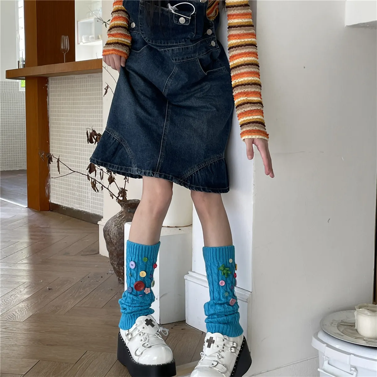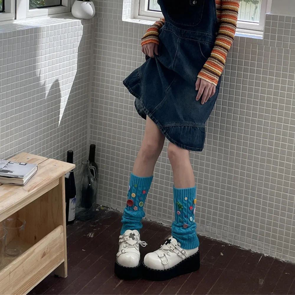 Design Handmade Button Pin Multicolor Socks