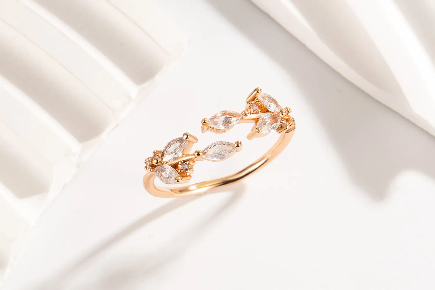 Add a Touch of Nature with the Leaf Design Zircon Ring for Women