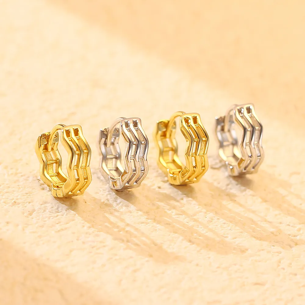 The wavy lines design of the earrings symbolizes fluidity and elegance, offering a contemporary yet simple design that works well with any outfit. These earrings make a stylish statement for those who appreciate minimalist jewelry with a touch of artistic expression. Their clean, refined aesthetic makes them an ideal accessory for anyone who loves simple, sophisticated designs.