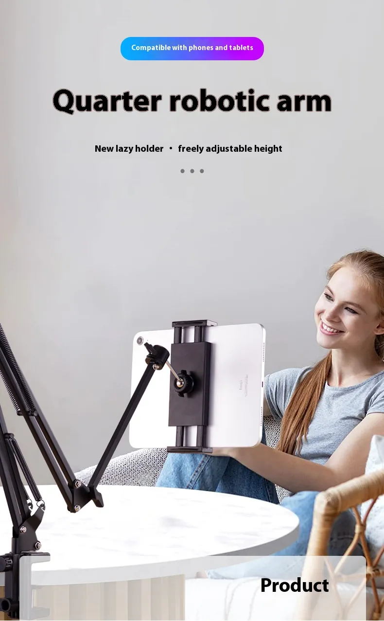 (upward view), meeting different viewing or shooting needs. Generally, the bending angle can range from about 0 degrees to 180 degrees. - Free height adjustment: The cantilever of some products can be stretched, and the height can be adjusted according to the user's needs, avoiding cervical discomfort caused by looking down at the device for a long time.