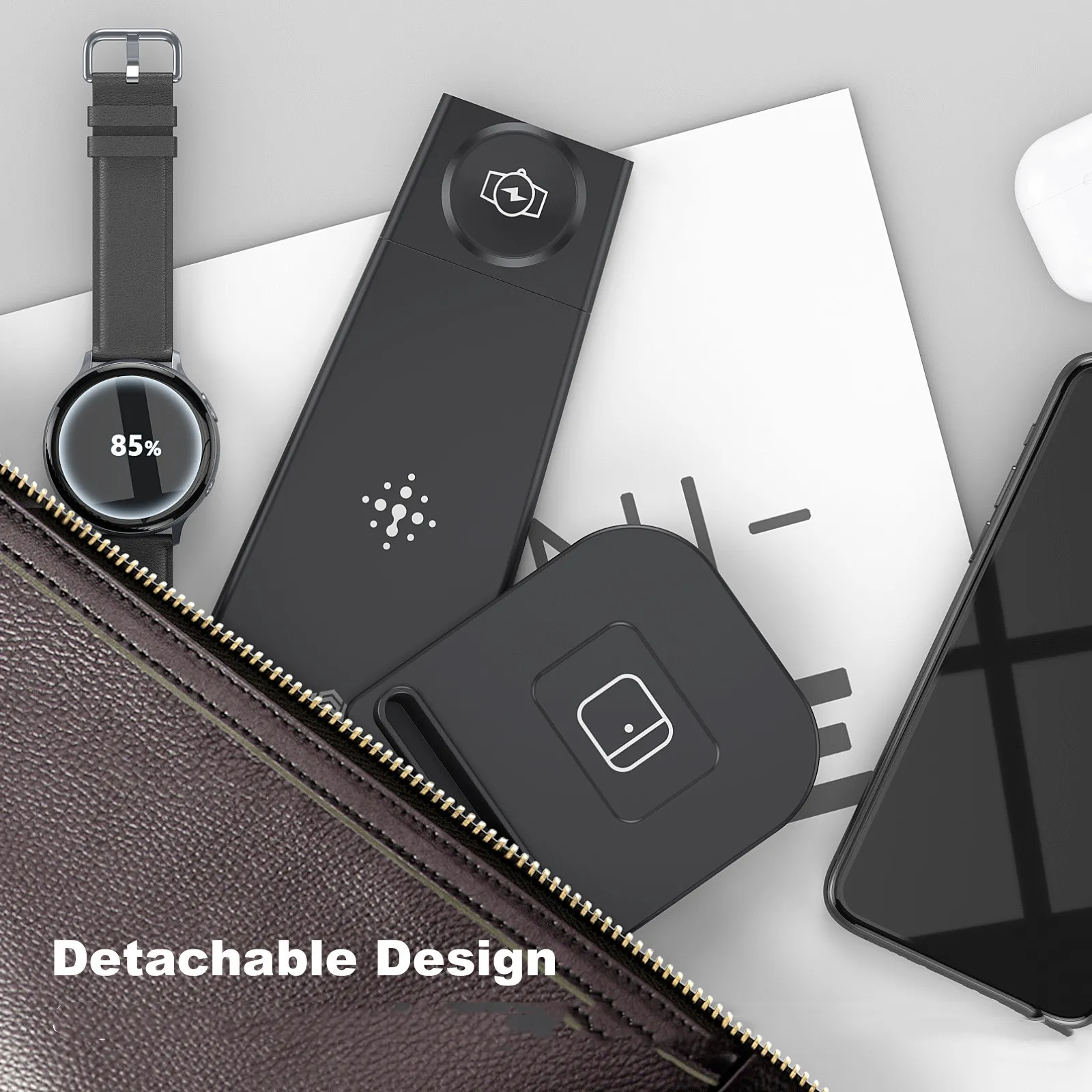 The charger’s non-slip surface keeps your devices securely in place while charging, ensuring that they remain stable and protected.