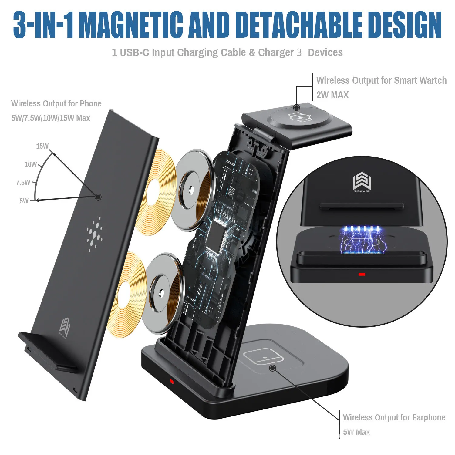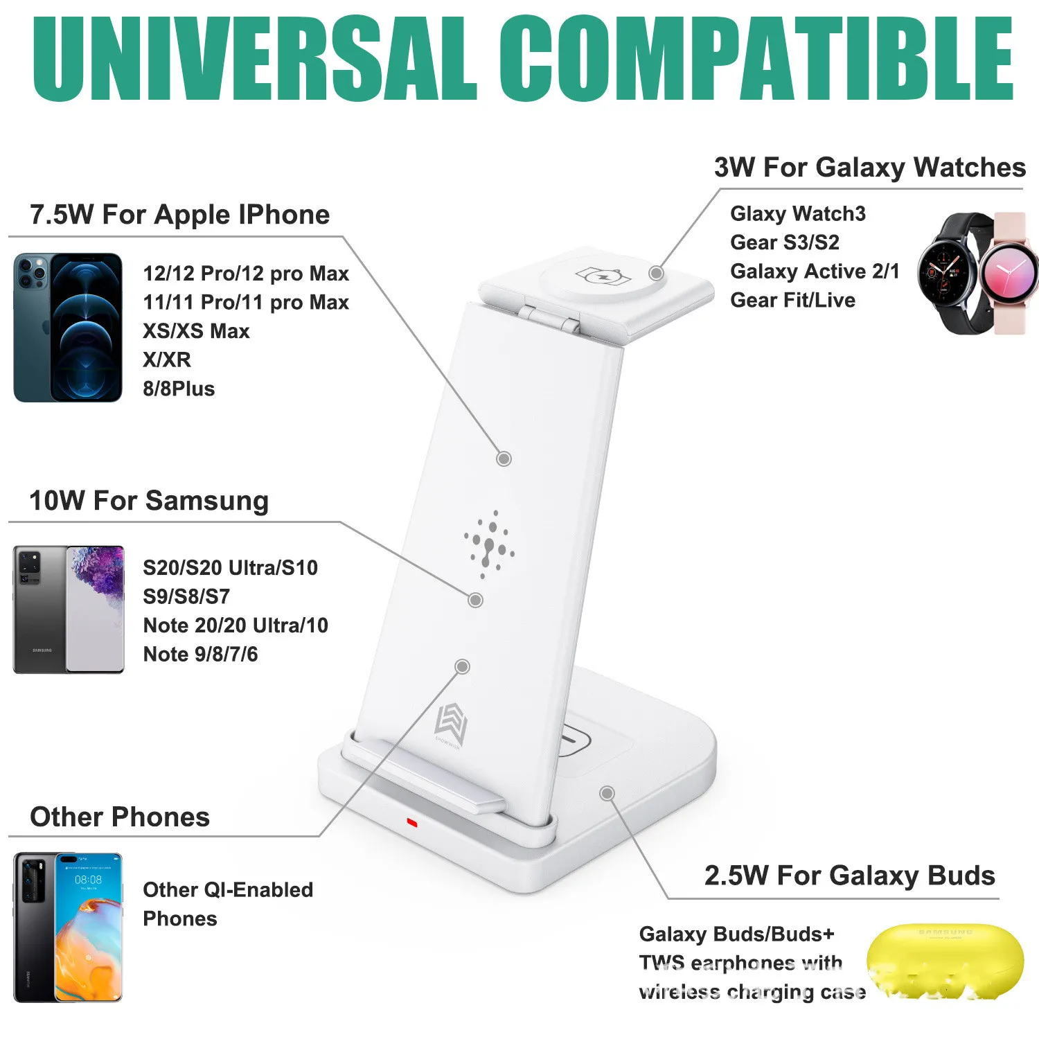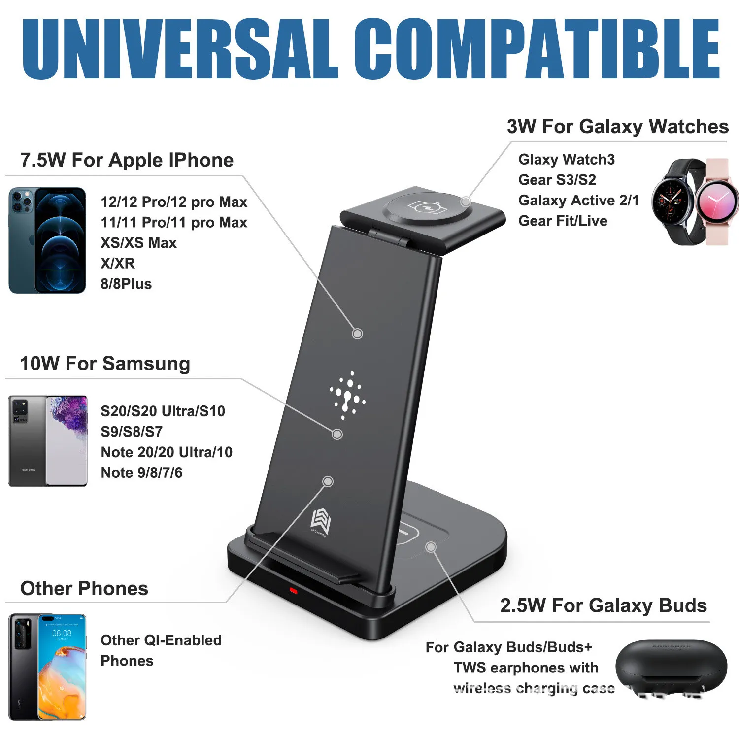 With its multi-device compatibility, the wireless charger base supports various Qi-enabled devices, offering a quick and hassle-free charging experience for everyone.