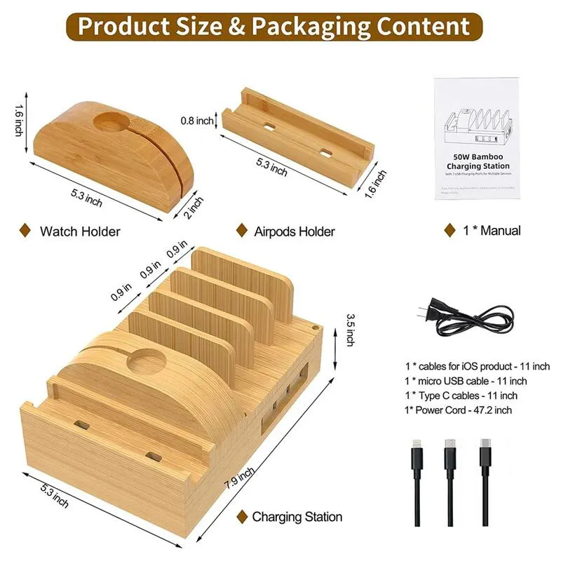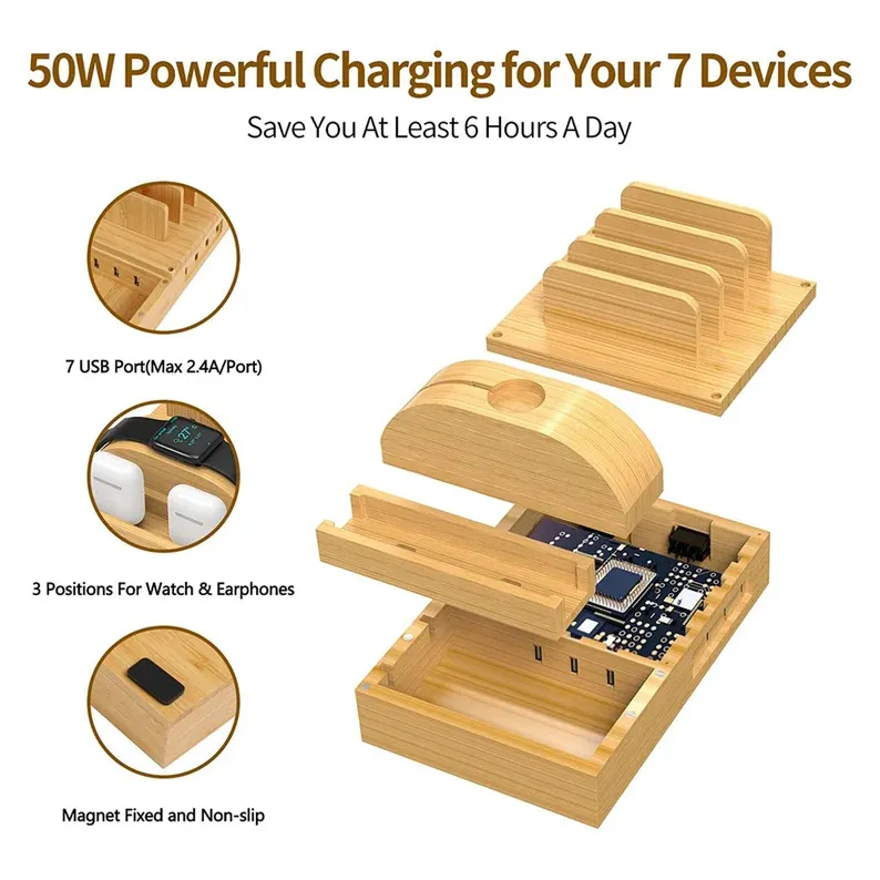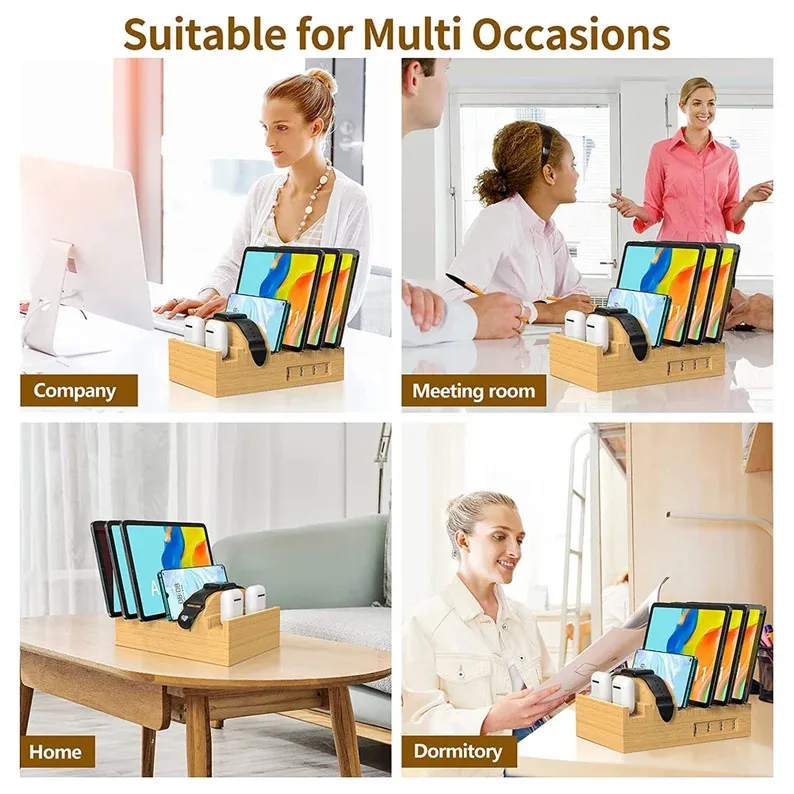 Desktop Multi-USB Bamboo Charger Bracket