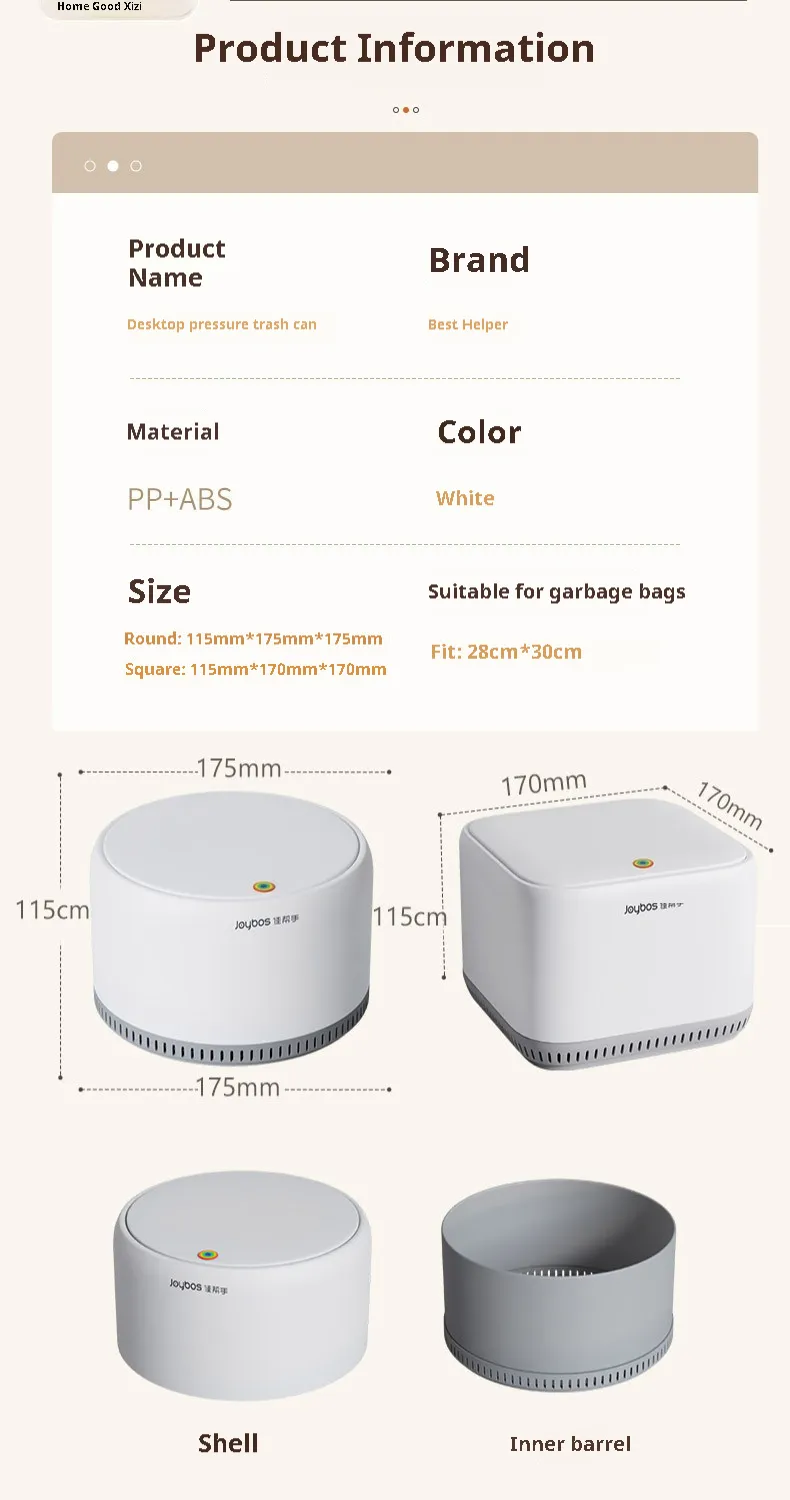 This trash bin offers the perfect balance of style, functionality, and practicality. Its sleek design makes it a great addition to any room, while its compact size ensures it fits where you need it most. Say goodbye to unsightly clutter and hello to a clean, organized space with this essential household accessory.