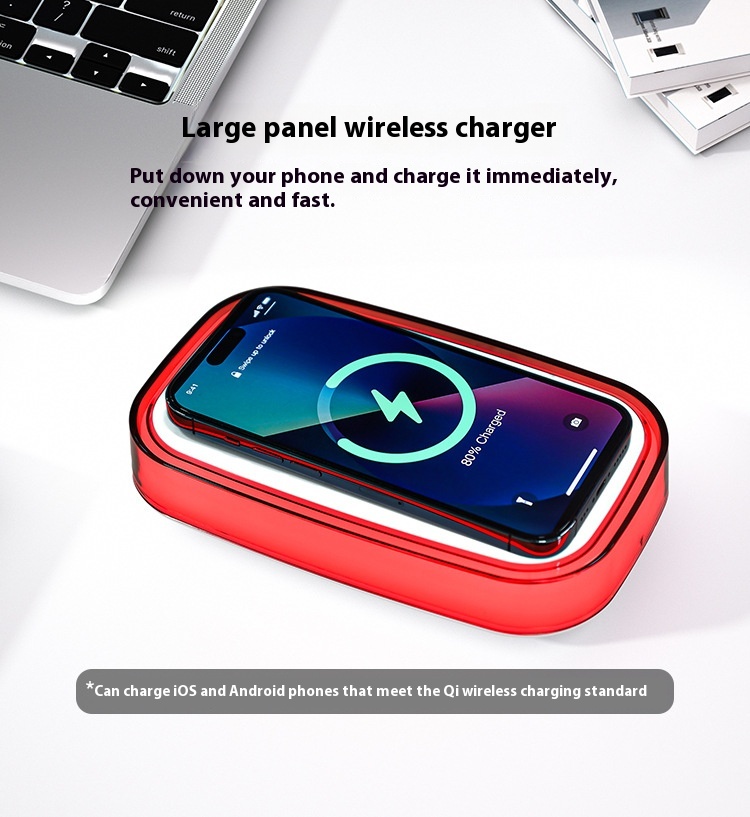 Wireless Charging: The integrated wireless charger allows you to conveniently charge your compatible devices without the