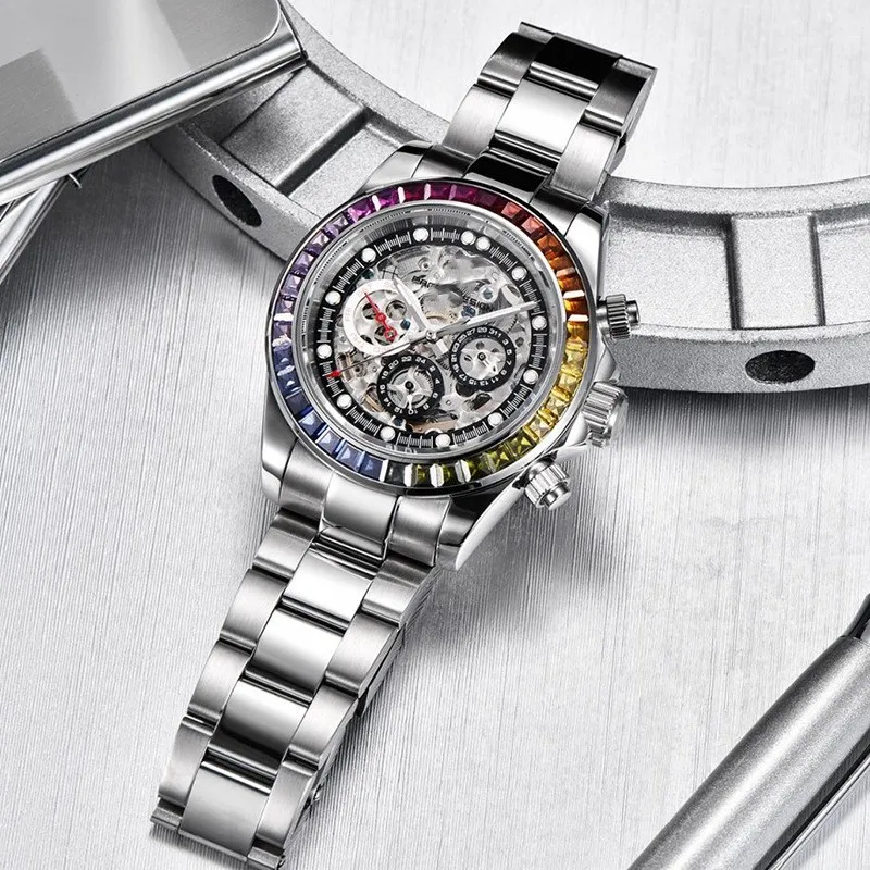 In conclusion, the Dial Design Transparent Men's Mechanical Watch is the perfect fusion of style, function, and innovation. With its transparent dial, mechanical movement, and elegant stainless steel case, this watch combines aesthetic appeal with practicality. Its sophisticated design, water resistance, and adjustable strap ensure it is both comfortable and durable. Whether you're an avid watch collector or someone who appreciates high-quality timepieces, this watch is a perfect addition to your collection.