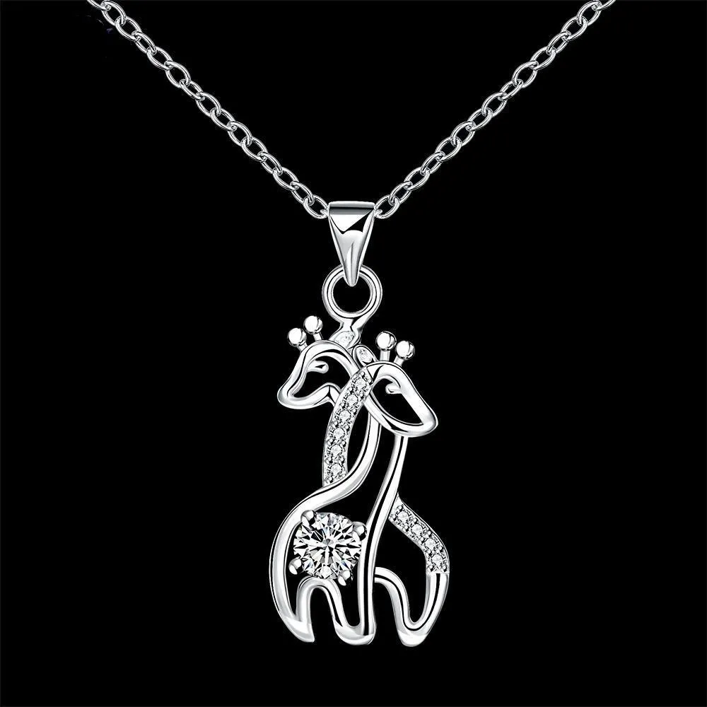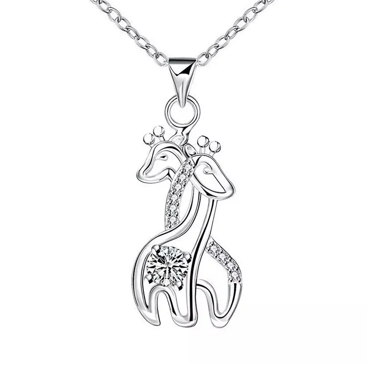 Diamond Giraffe Silver Necklace Korean Pendant