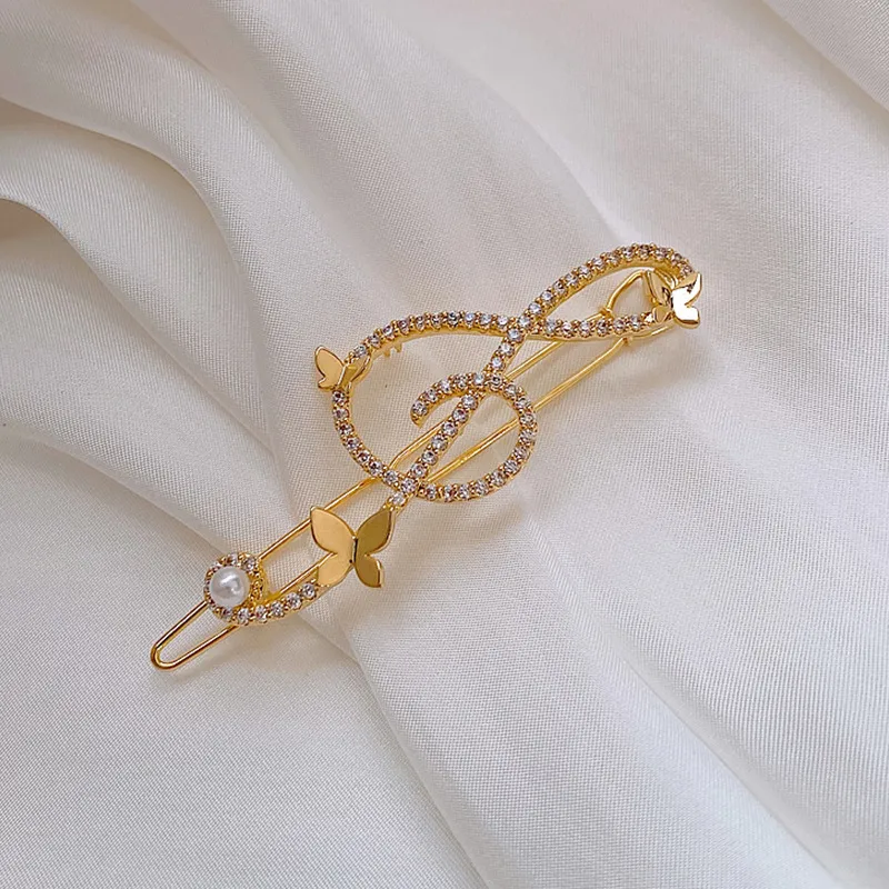 Diamond Pearl Musical Note Butterfly Hairpin