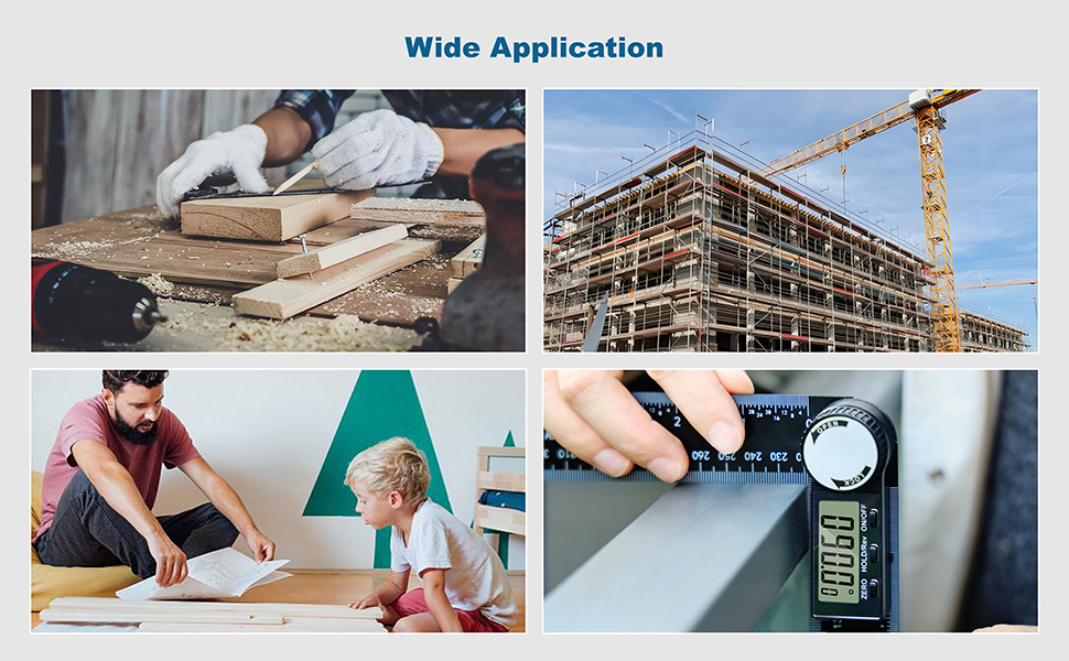 - Versatile: Angle measurement tool with a continuous scale of measuring lengths up to 15 16/32" (400mm), folding to 8.6" (219mm), and displaying angles in ° and " or decimal degrees with 0.05° resolution; clear, professional results at a glance, no more difficult-to-read like traditional woodworking tools.