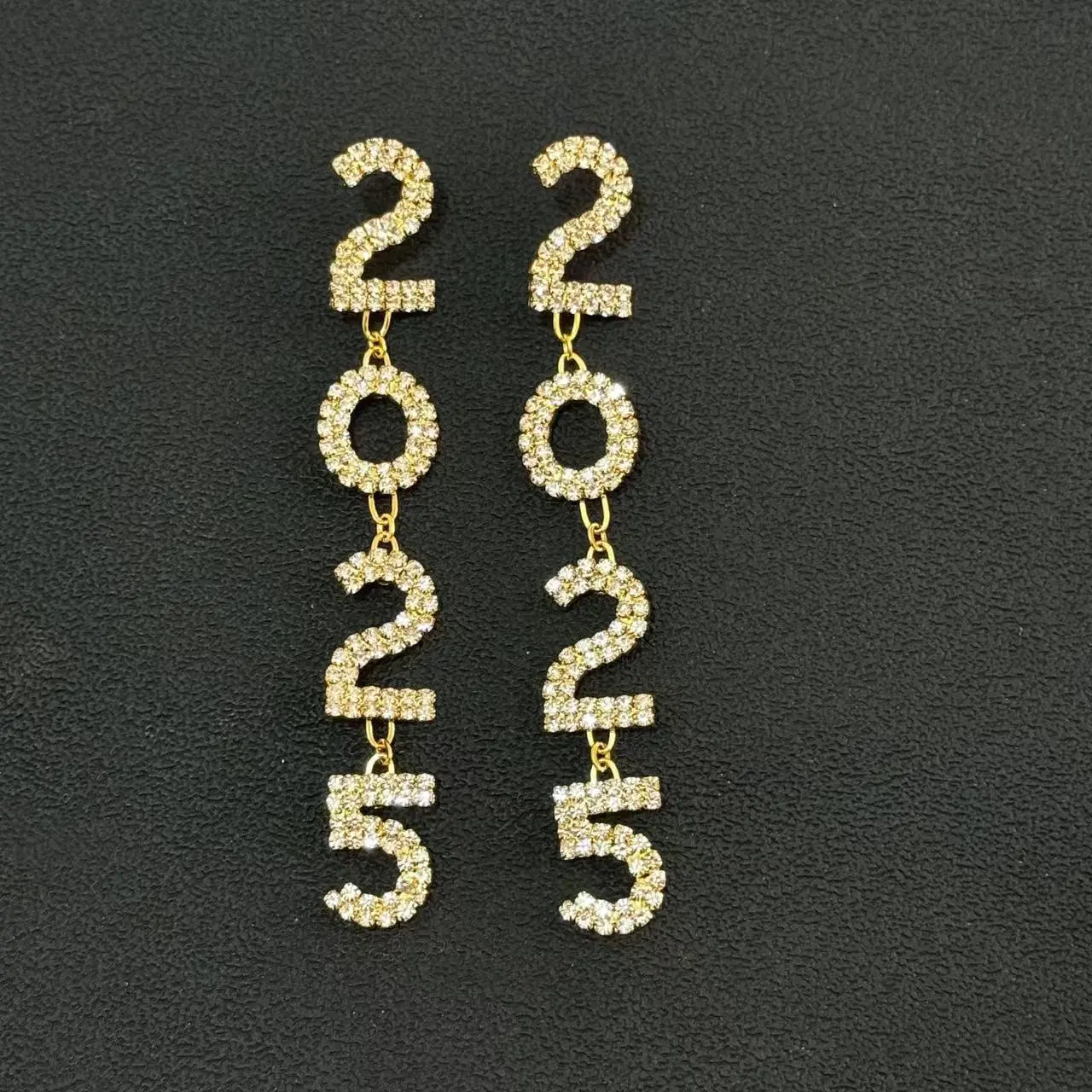 Digital Rhinestone Pendant Geometric Tassel Digital Pendant Earrings