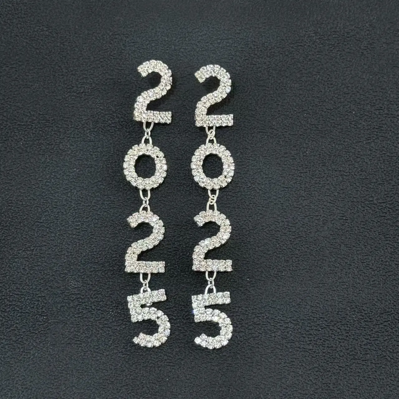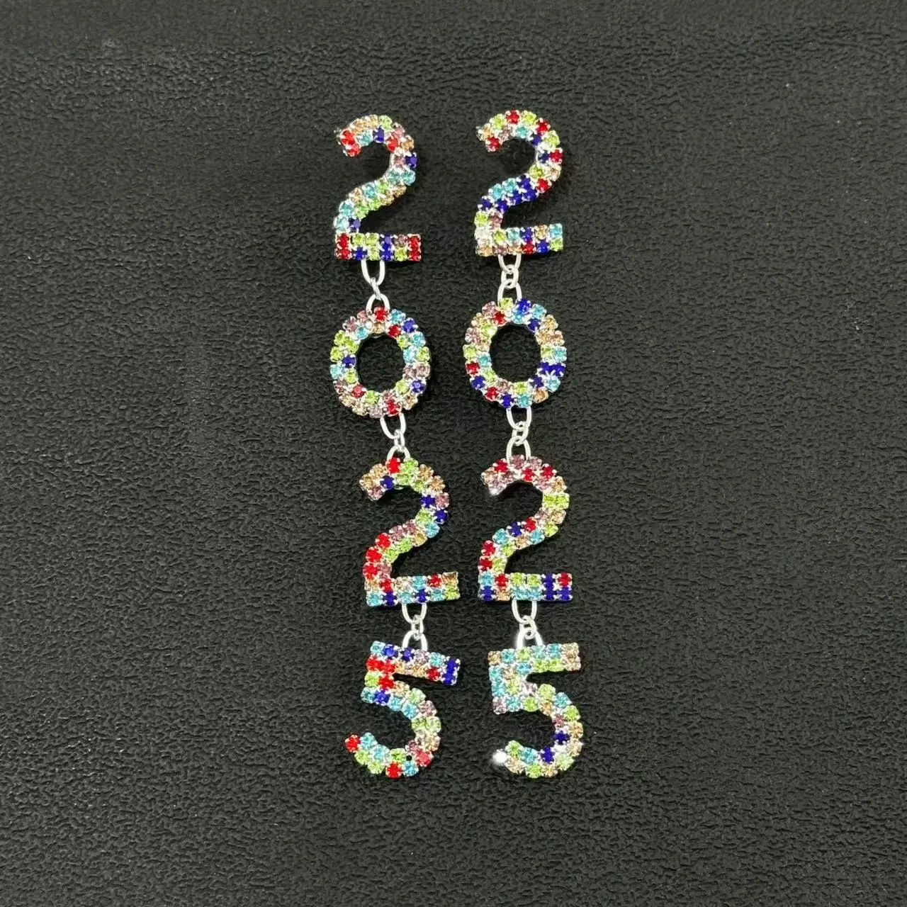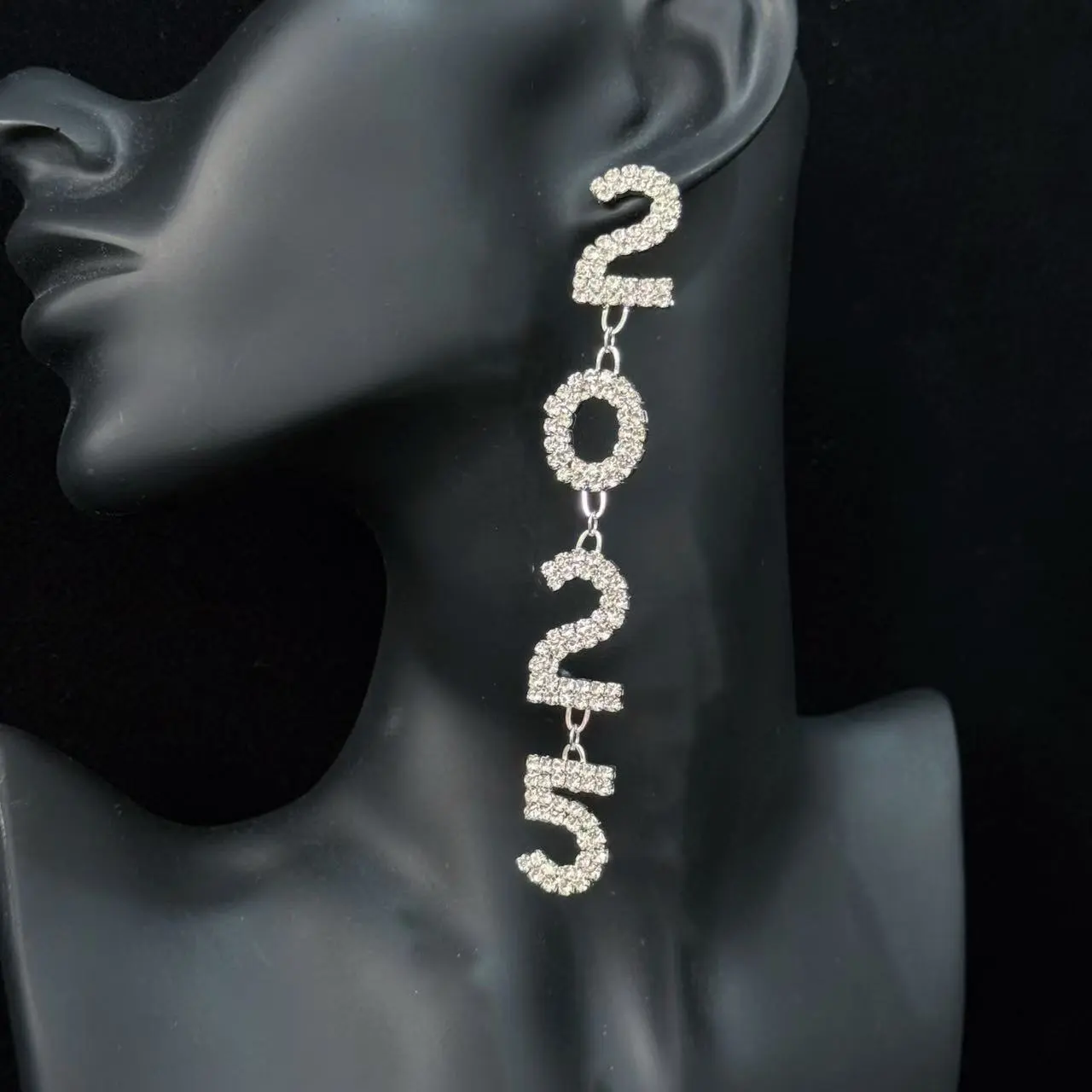 Digital Rhinestone Pendant Geometric Tassel Digital Pendant Earrings