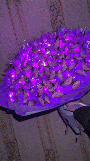 butterfly-themed bouquets. The package includes an assortment of artificial butterflies, flowers, and a light string. This unique bouquet is