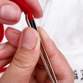 With the tool that easily and quickly grips the elastic ribbon, drawstrings, and cording. The clips have special