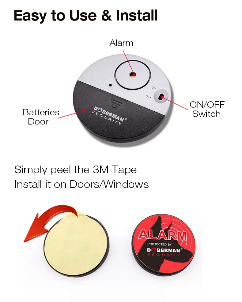 Equipped with a loud, piercing siren, the Doberman Security Alarm instantly alerts you and your neighbours of any unauthorized entry, scaring off potential intruders.