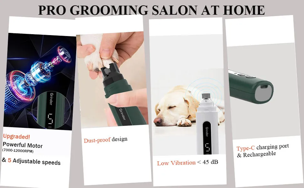Dog Nail Grinder - Electric Rechargeable Pet Nail Trimmer, 5-Speed Quiet Cat Nail Grinder for Small to Large Dogs & Cats Claw Care