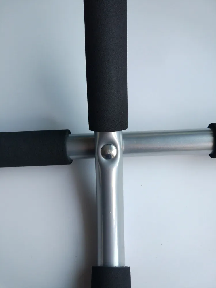 1. Using clever mechanics principles, the horizontal bar is fixed by the weight of the body, without any modification to the door frame, nor