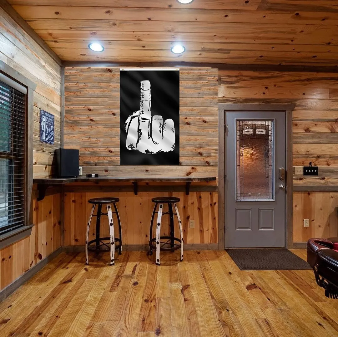 The Middle Finger Flag is designed to be eye-catching and humorous, with a large, clear middle finger graphic printed on the fabric. The bold design and vibrant colors make it impossible to ignore, ensuring that it stands out in any room. The flag adds a rebellious and playful element to any space, making it a fun and quirky way to express personality or add a touch of humor to your dormitory, home, or office.