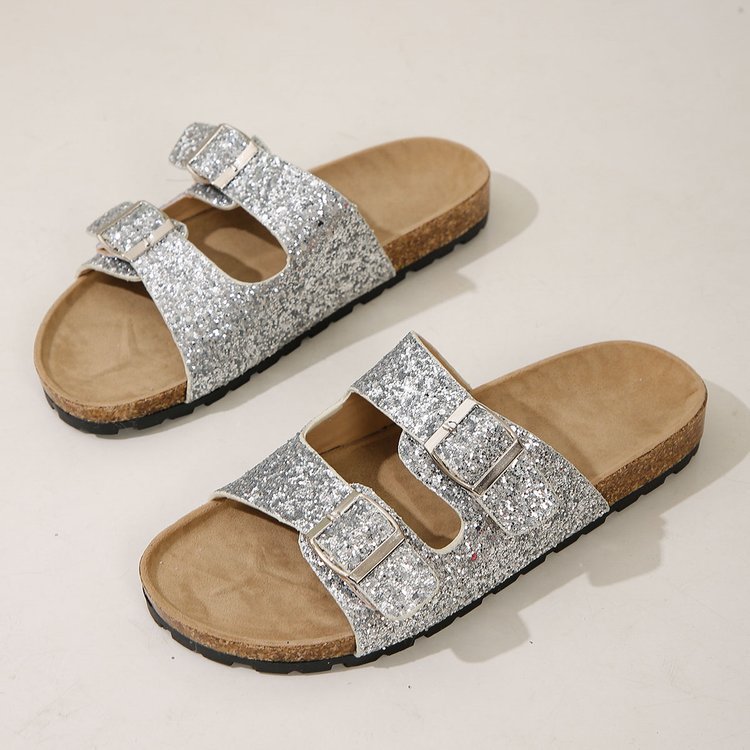 Step up your summer footwear game with the Double Buckle Sandals for Women. These new fashion sequined beach shoes are designed to combine comfort and style, making them the perfect choice for summer leisure and outdoor activities. Whether you're heading to the beach, lounging by the pool, or enjoying a casual day out, these sandals will keep you looking chic and feeling comfortable.