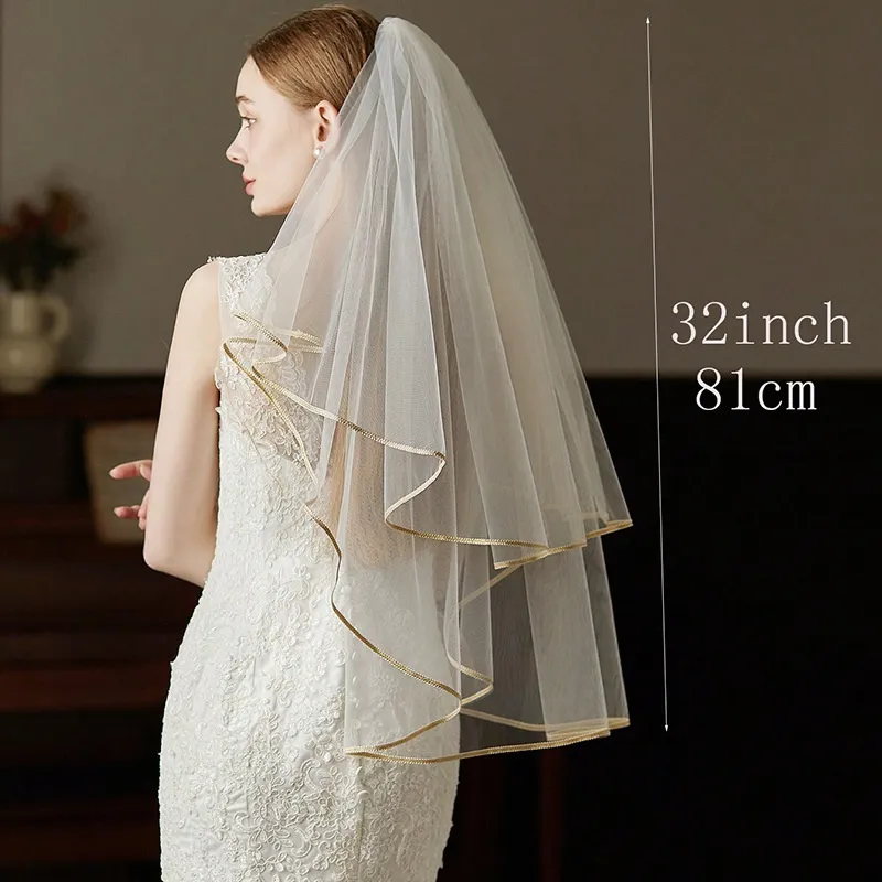 Double Champagne Edge Metal Hair Comb Bride Wedding License Trip Shoot Veil