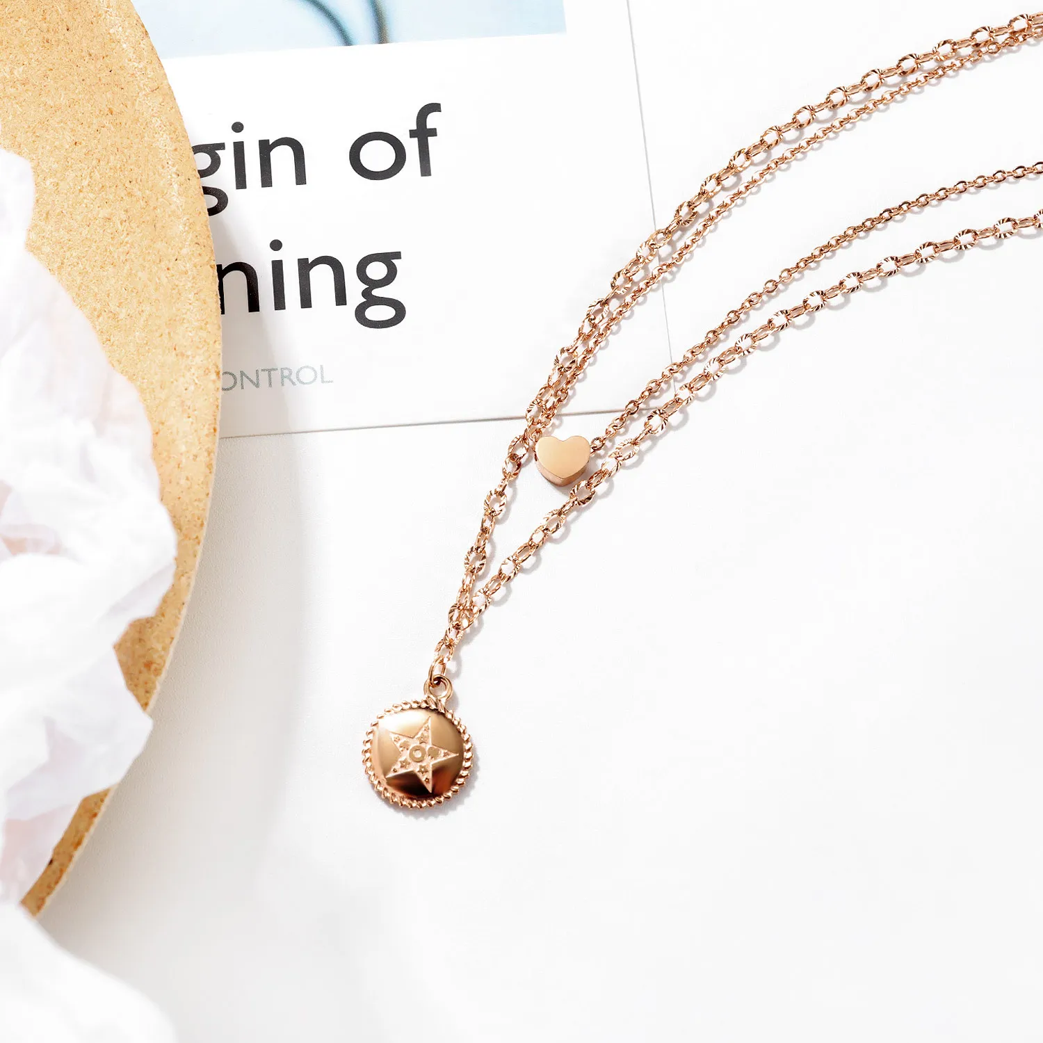 Double Heart Shaped Titanium Steel Pendant Pentagram Necklace