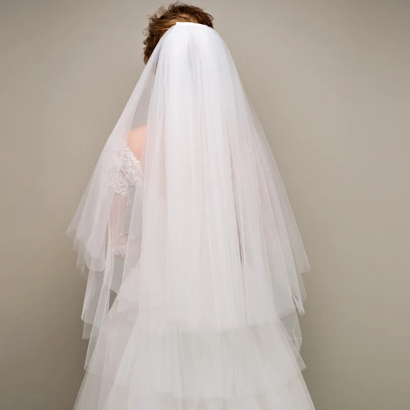This veil is made of 3m widened Swiss high-density soft yarn, the longest layer is 90cm