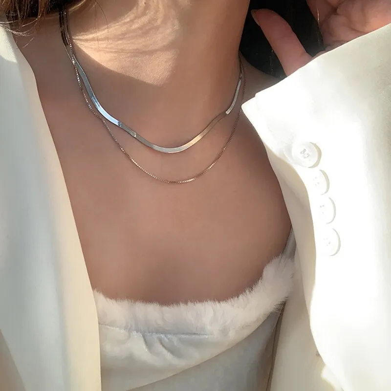 Double Layer Snake Bone Sterling Silver Hip-hop Personality Retro Stacking Necklace Women