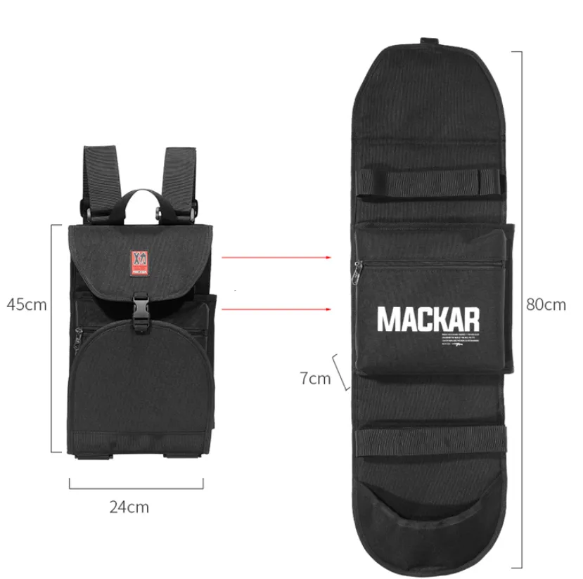 Designed for skaters who need a practical and stylish way to carry their board and essentials.