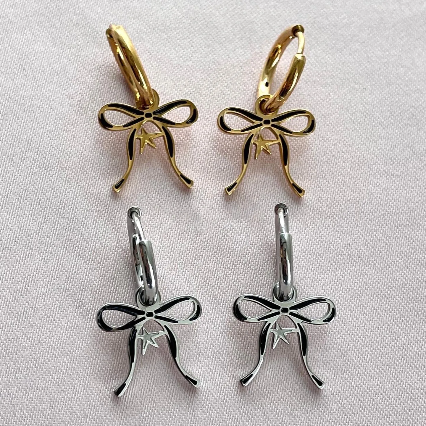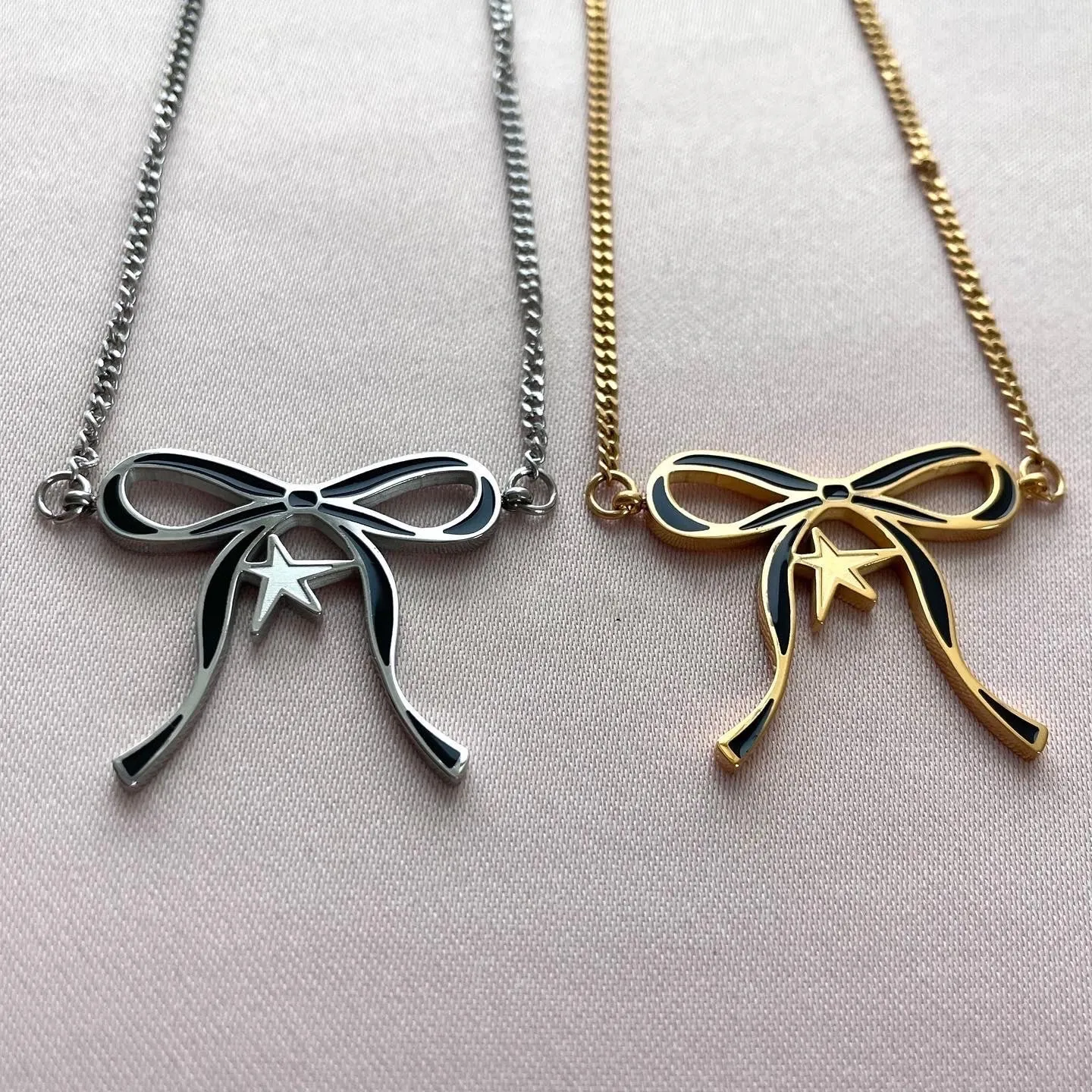 The Double-Sided Dripping XINGX Bowknot Necklace and Gentleman Bow Tie Color Retaining Earrings
