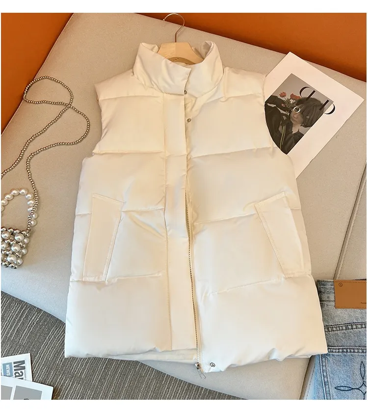 Stay cozy and stylish this autumn and winter with the Down Cotton Vest for women. Featuring a chic, short design, this Korean-style vest offers a perfect blend of warmth and fashion. Its lightweight, down-filled construction ensures you stay insulated without the bulk, while the soft cotton exterior provides a comfortable, breathable fit. Ideal for layering over sweaters or long-sleeve tops, this vest is versatile enough for both casual outings and more polished looks. Perfect for those chilly days, it’s a must-have addition to your winter wardrobe.