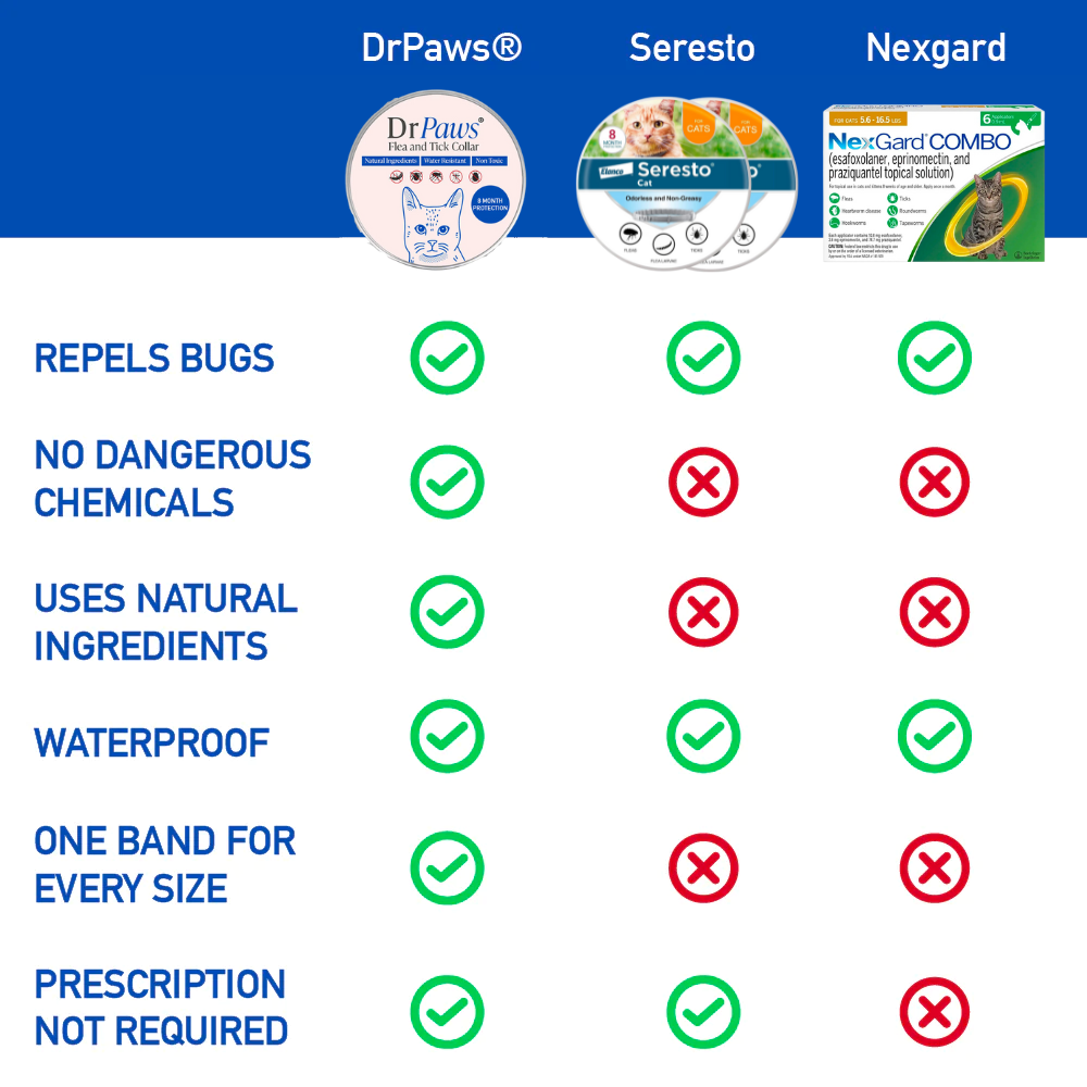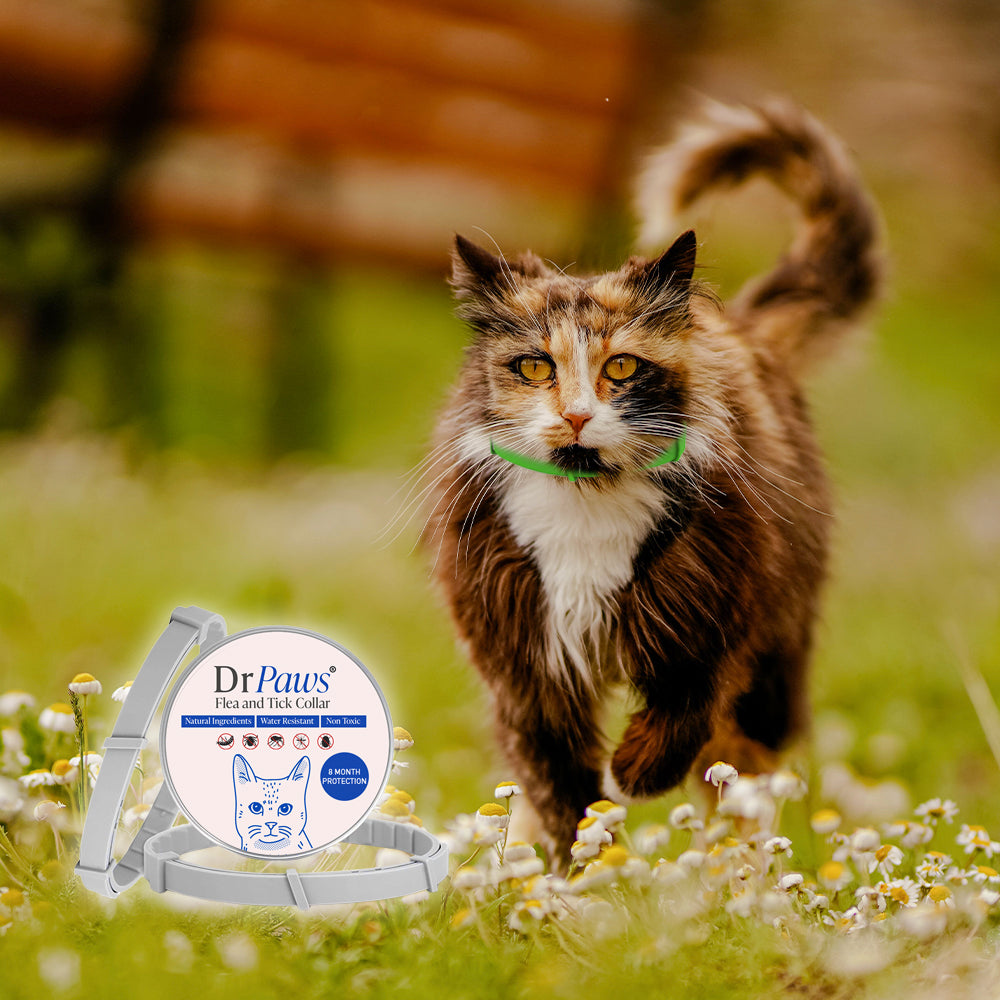 DrPaws® Flea and Tick Free Collar stands out as a natural, chemical-free alternative to conventional pet collars. Suitable for all sizes and waterproof, it offers effective, non-toxic protection without a prescription. Ideal for eco-conscious cat owners, it's a safer, environmentally friendly choice for your pet's well-being.