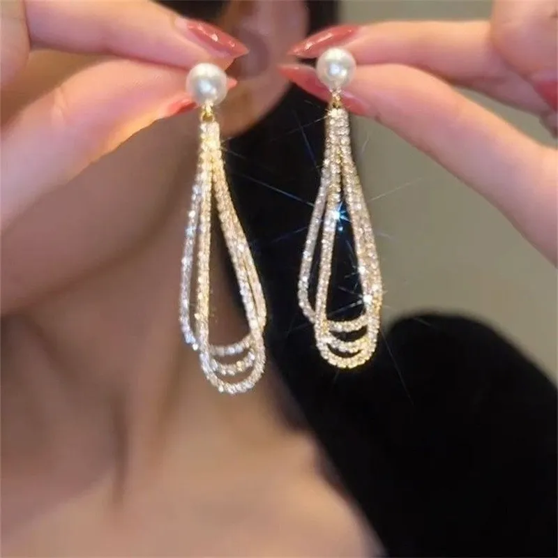 Color: gold drop shape full rhinestone pearl earrings 43, Silver drop shape full rhinestone pearl earrings 44