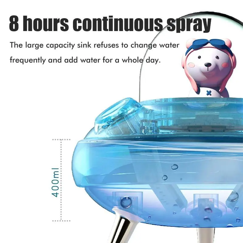 Cute Cartoon Bear Design: This humidifier features an adorable bear shape, adding a fun and whimsical touch to your space.
