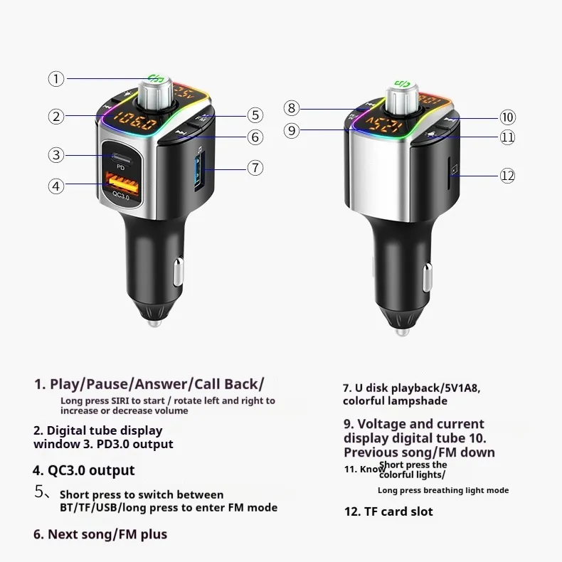 The standout feature of the Dual Screen Dual Display MP3 Car Bluetooth Receiver is its innovative dual screen design. With two separate displays, you can enjoy a more intuitive and organized interface. The first screen shows your music track, volume, and other media details, while the second screen displays important information like call notifications, device connections, or even time.