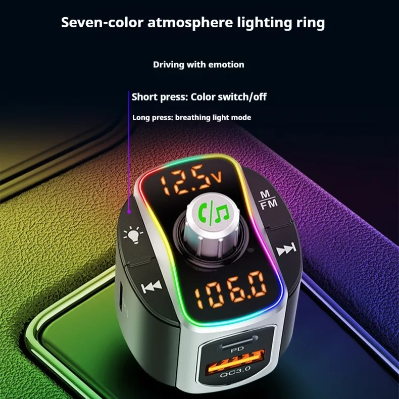 modern touch to your car’s interior. With its compact design and vibrant dual displays, this Bluetooth receiver complements any car,