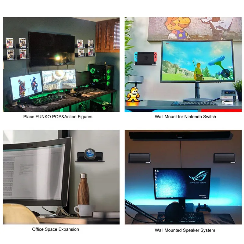In the living room, these shelves can serve as the perfect place to display decorative items such as vases, framed pictures, or art pieces. The minimalist design of the acrylic shelves makes them ideal for showcasing your favorite items without overwhelming the room.